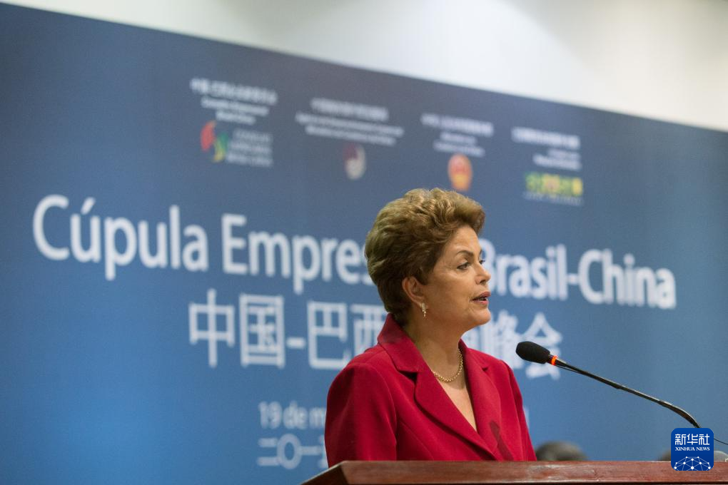 2015年5月19日,在巴西首都巴西利亞,時任巴西總統(tǒng)迪爾瑪·羅塞芙在中國—巴西工商峰會閉幕式上致辭。 新華社記者 徐子鑒 攝