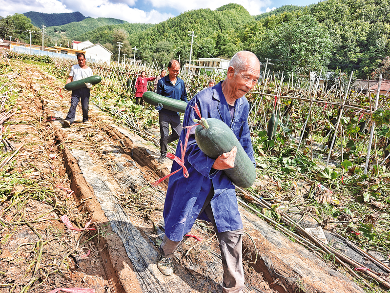說話間,又一輛卡車駛進基地。胡小剛擦了擦汗,再次加入裝車隊伍。陽光下,滿架的冬瓜、忙碌的身影、即將啟程的貨車,共同勾勒出一幅豐收增收的美好圖景。